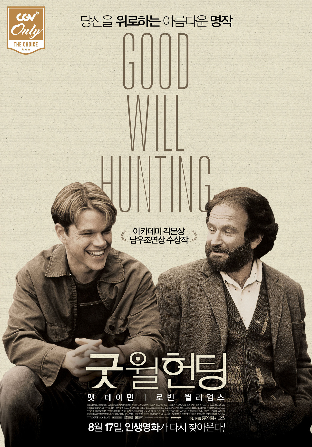 - 출연: 맷 데이먼(윌 헌팅), 로빈 윌리엄스(숀), 벤 애플렉(랭보)