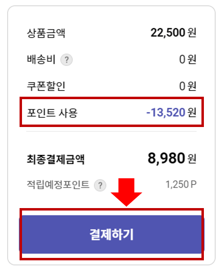 5. 해피머니 상품권이랑 출석체크 2,000원 교환권, 통합 포인트까지 적용해서 최종 결제금액은 8980원이 되었습니다!